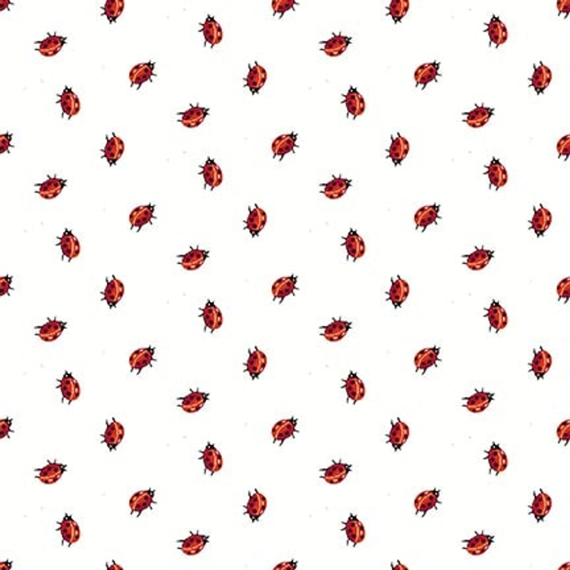 1552-08 Enchanted Forest Tossed Ladybugs White/Red for Henry Glass