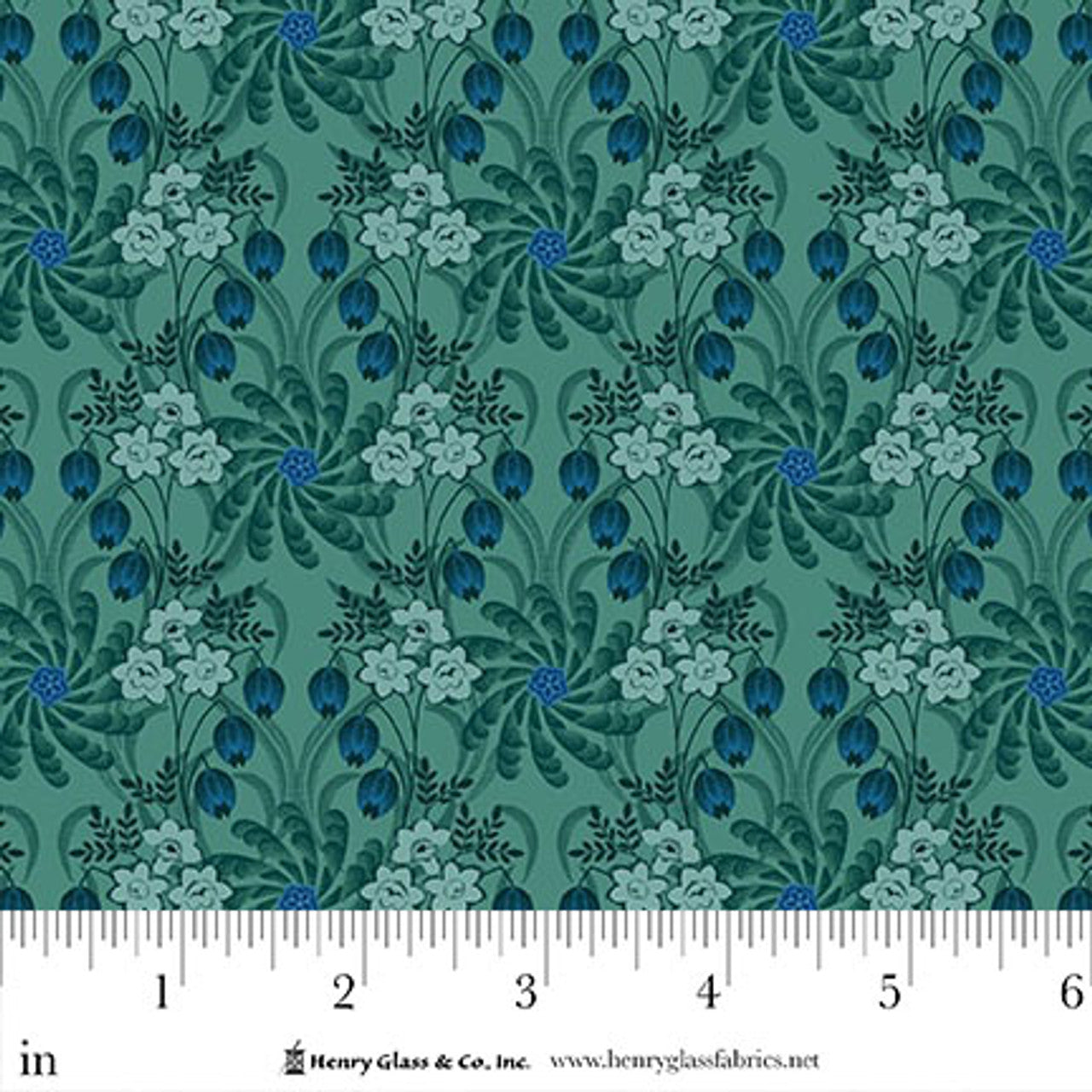 3477-76 Philomena Light Turquoise Medallion and Lilies BY Michelle Yeo for Henry Glass