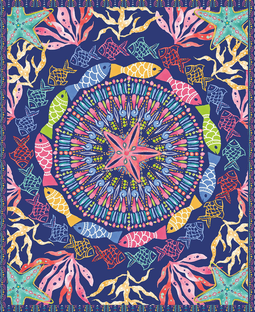 3738P-77 Dark Blue Along the Coast Junebug by Blank Quilting Fabric PANEL
