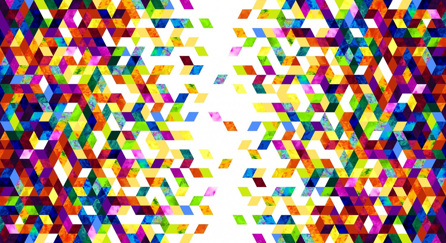6245-11 GEOFETTI 2 Cubes Rising Border White Multi for Studio E Fabric