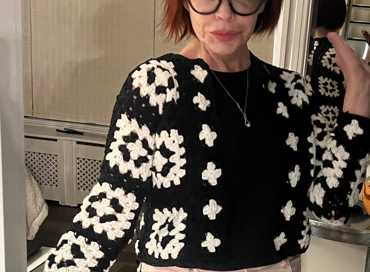 Consider buying our crochet kit that contains the pattern, yarn, and crochet hook you will need to make your very own chic granny square crochet cardigan.