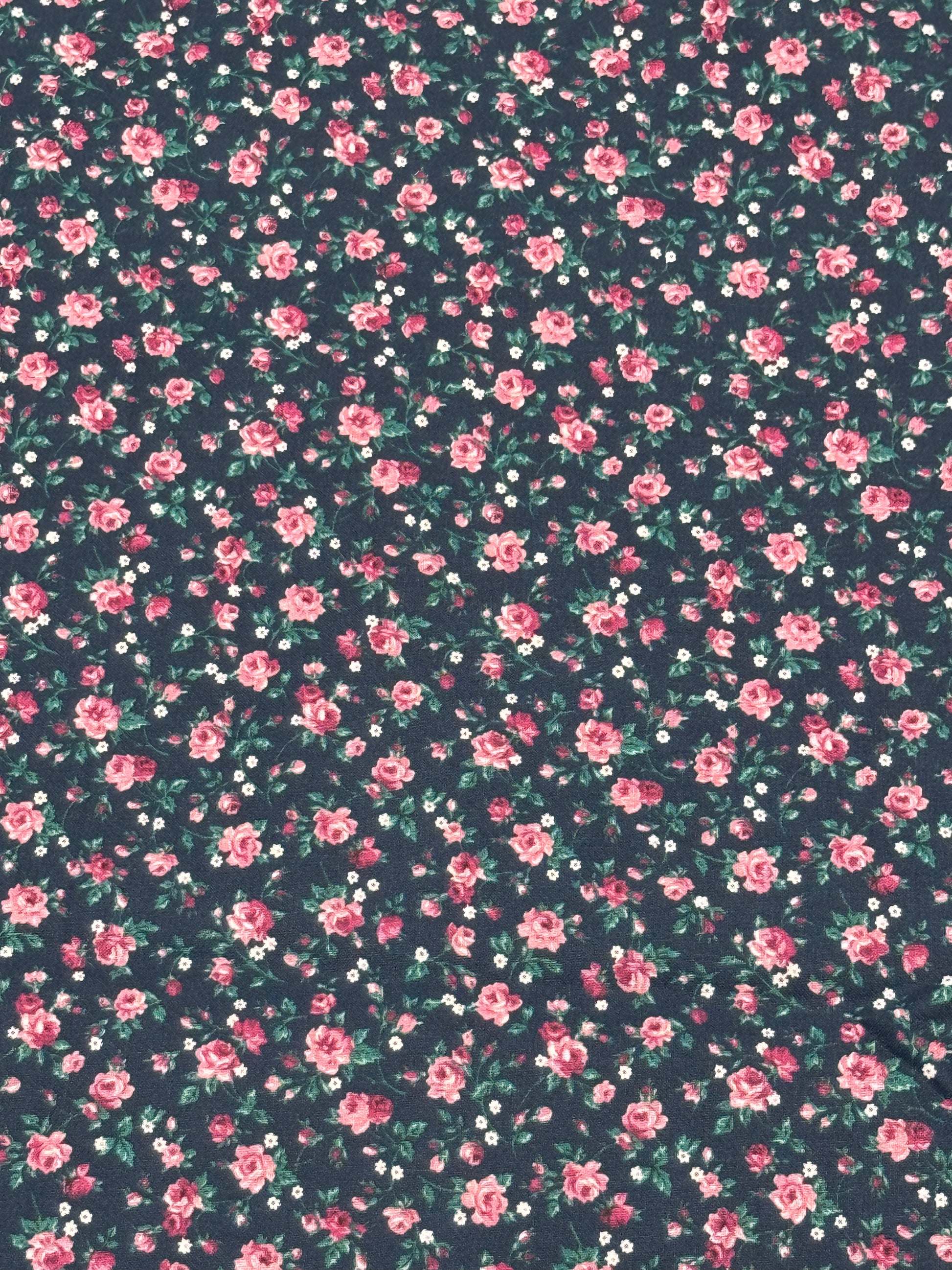 Bluish fabric with small roses and white flowers VINTAGE QUILTING FABRIC