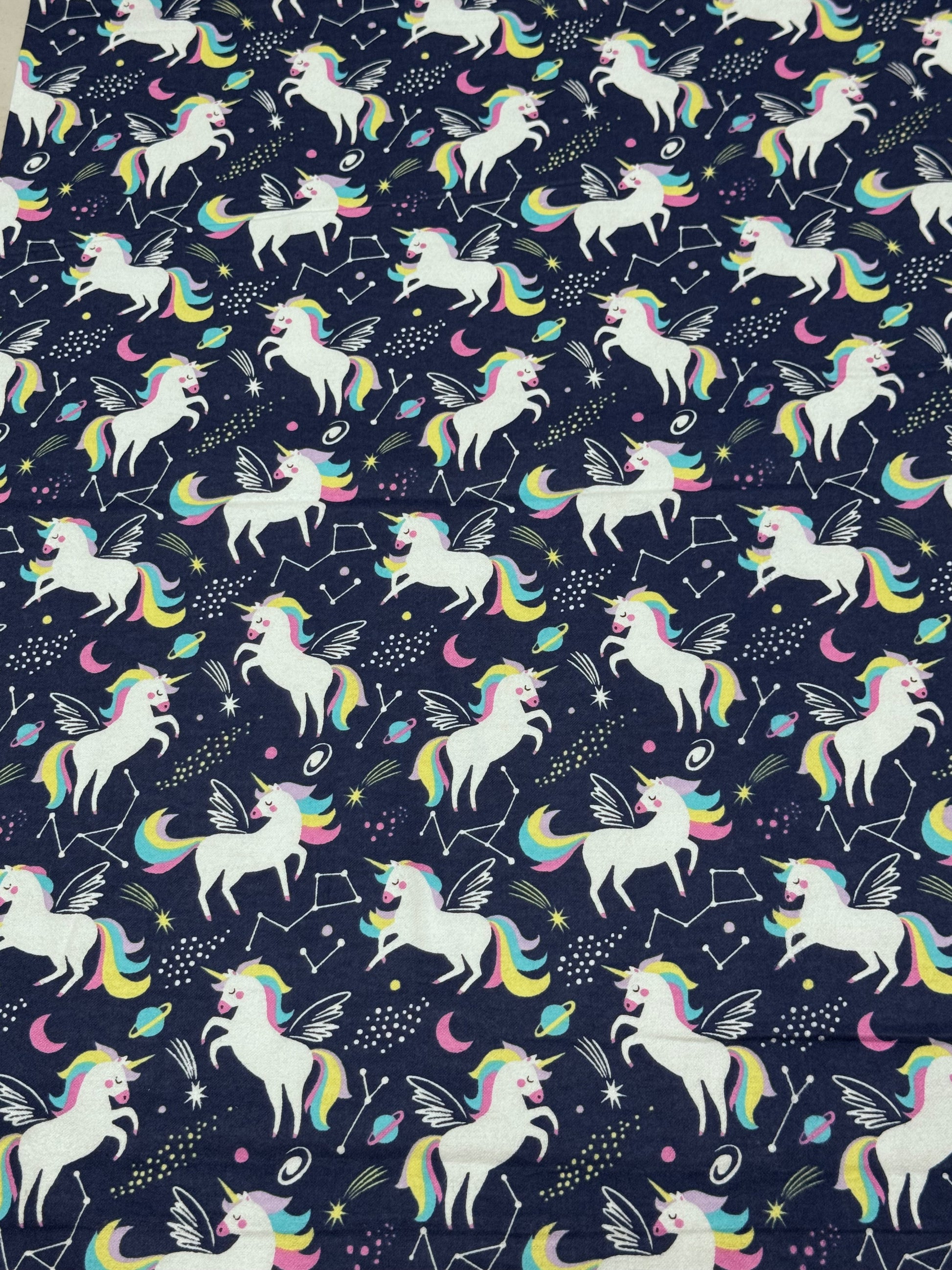 CELESTIAL UNICORNS ON BLUE flannel by the HALF yard
