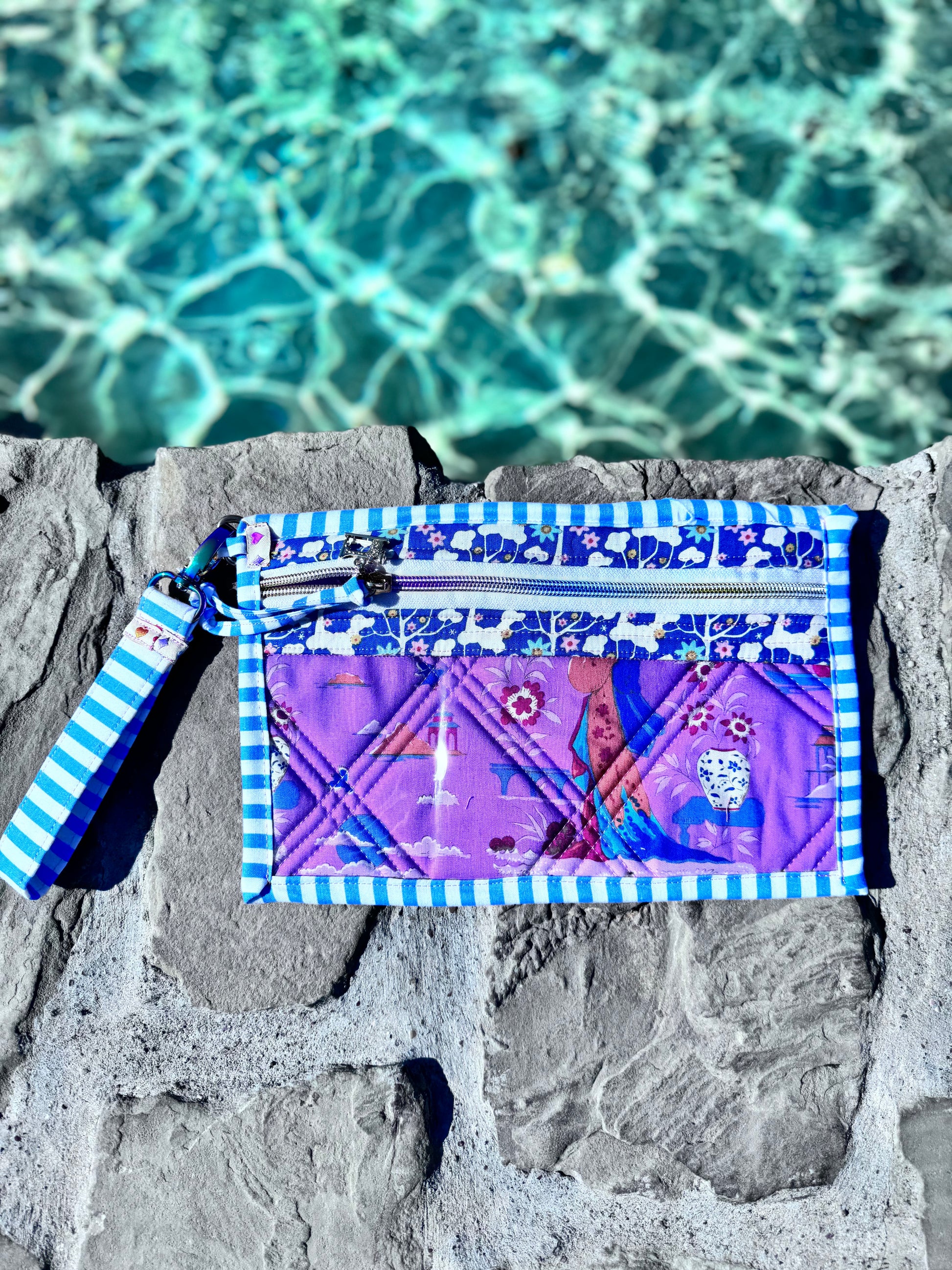 Bag features a removable wristlet handle for both crafting purposes or use as clutch purse. Can easily fit your phone keys and small wallet / credit cards.
