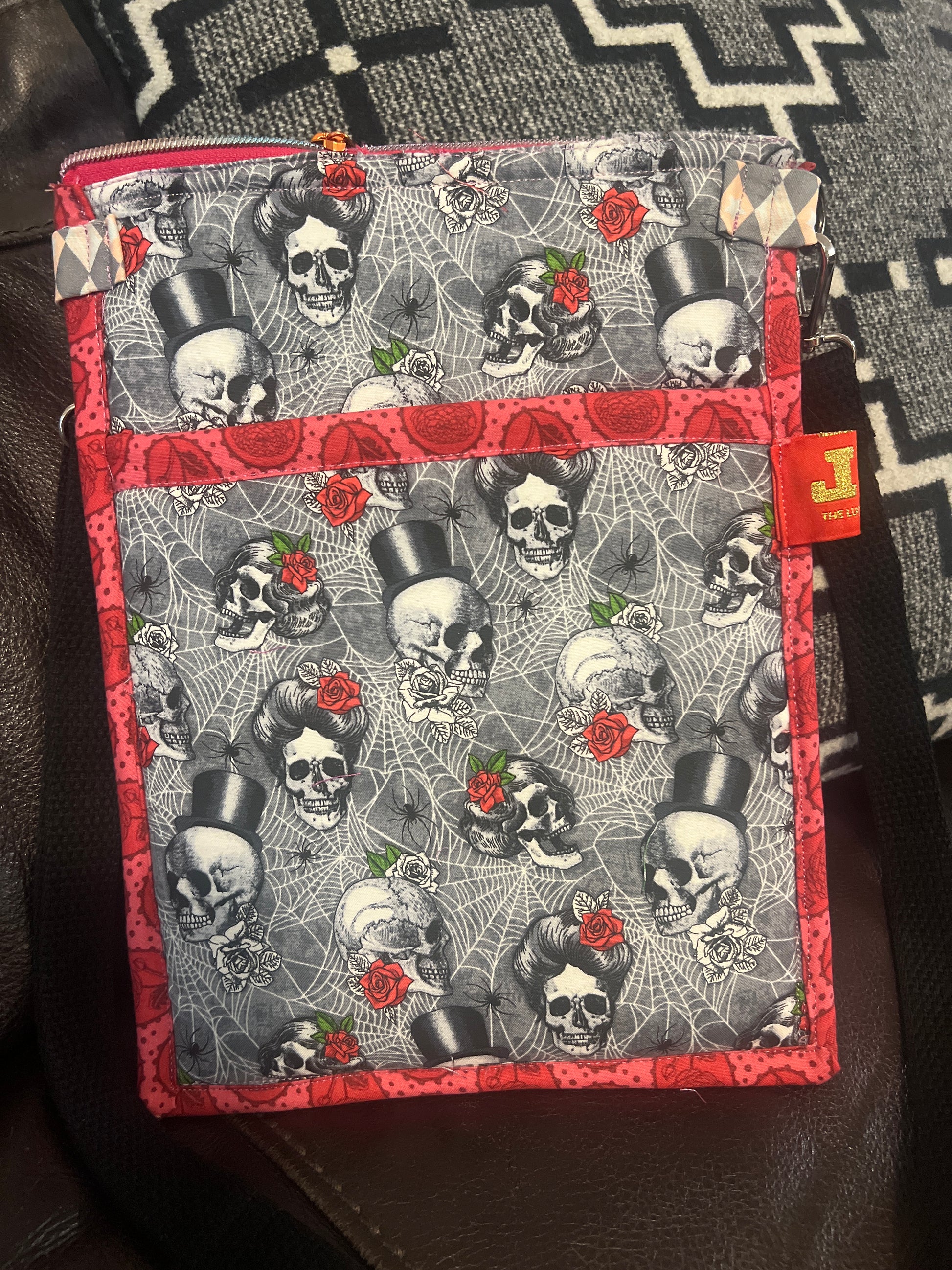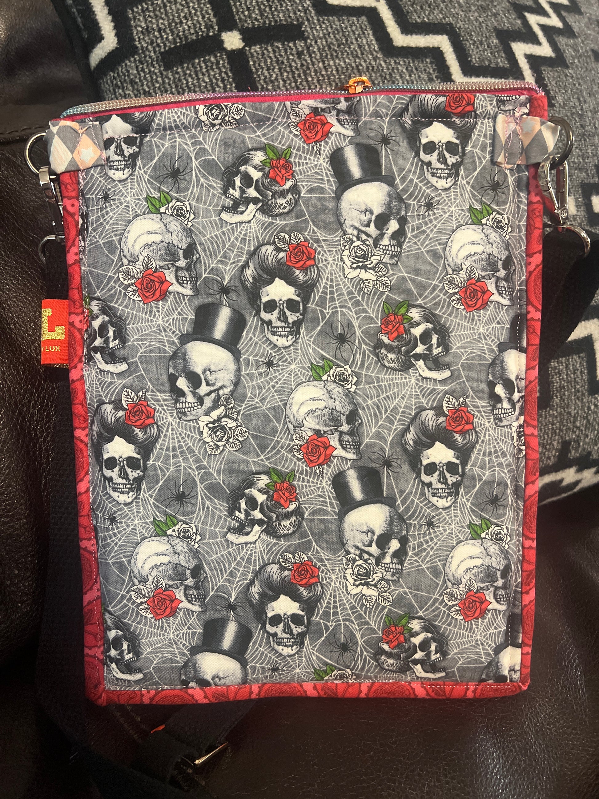 Spooky Bag Till Death Do Us Part Get ready to add a spooky touch to your style with the Spooky Bag Till Death Do Us Part collection by Northcott Fabrics. This crossbody purse features a zippered top pocket and plushie interior foam for added comfort. Perfect for any Halloween enthusiast, stay stylish and organized with this one-of-a-kind bag.