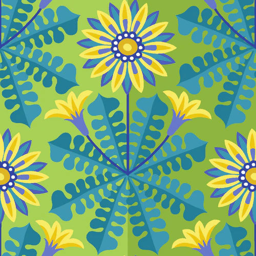 Gazania TURQUOISE Flower Dance by Jane Sassaman Fabric Sold by the Half Yard