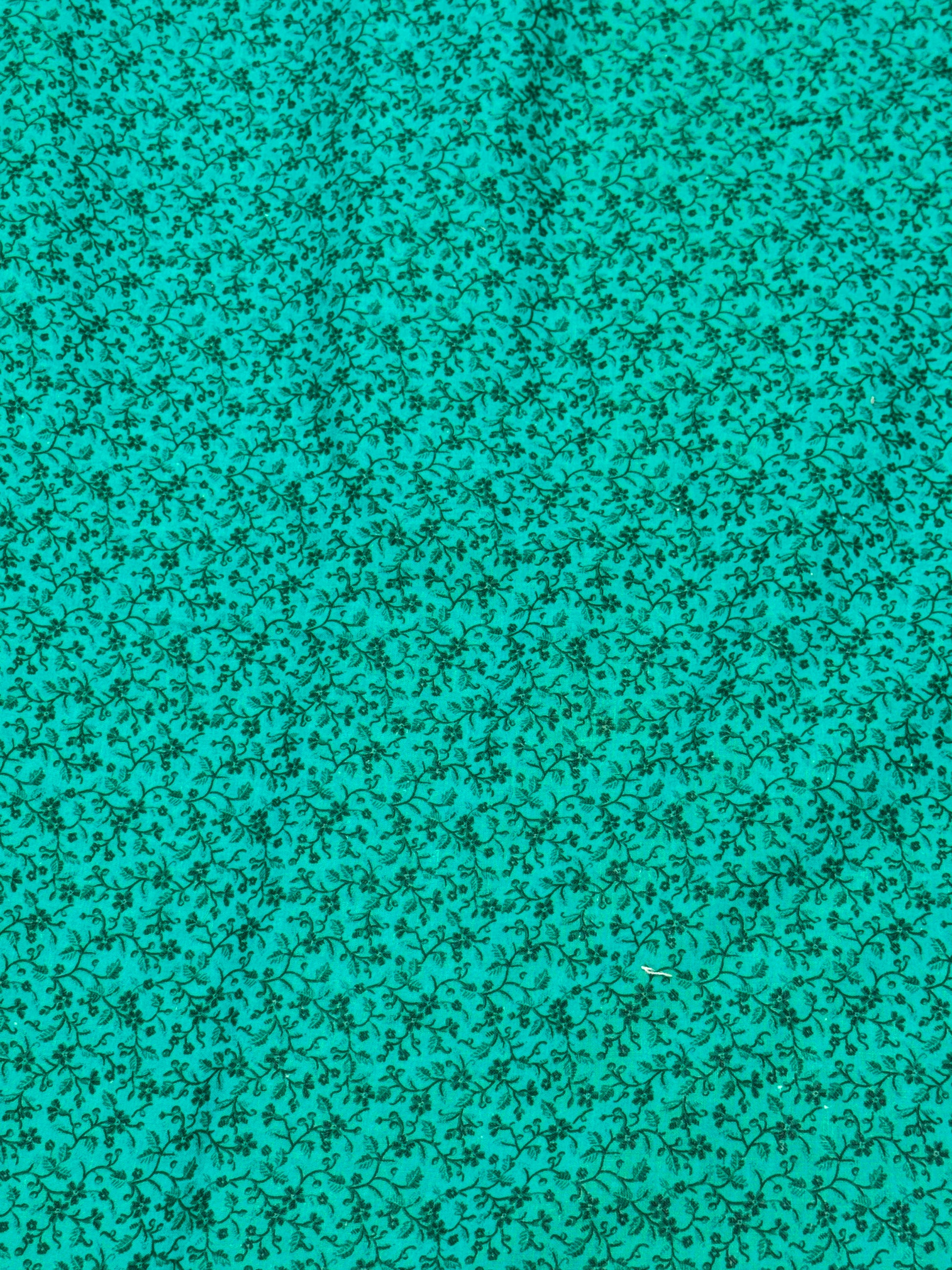 FLOWER ON bluish green fabric on vine BY THE HALF YARD