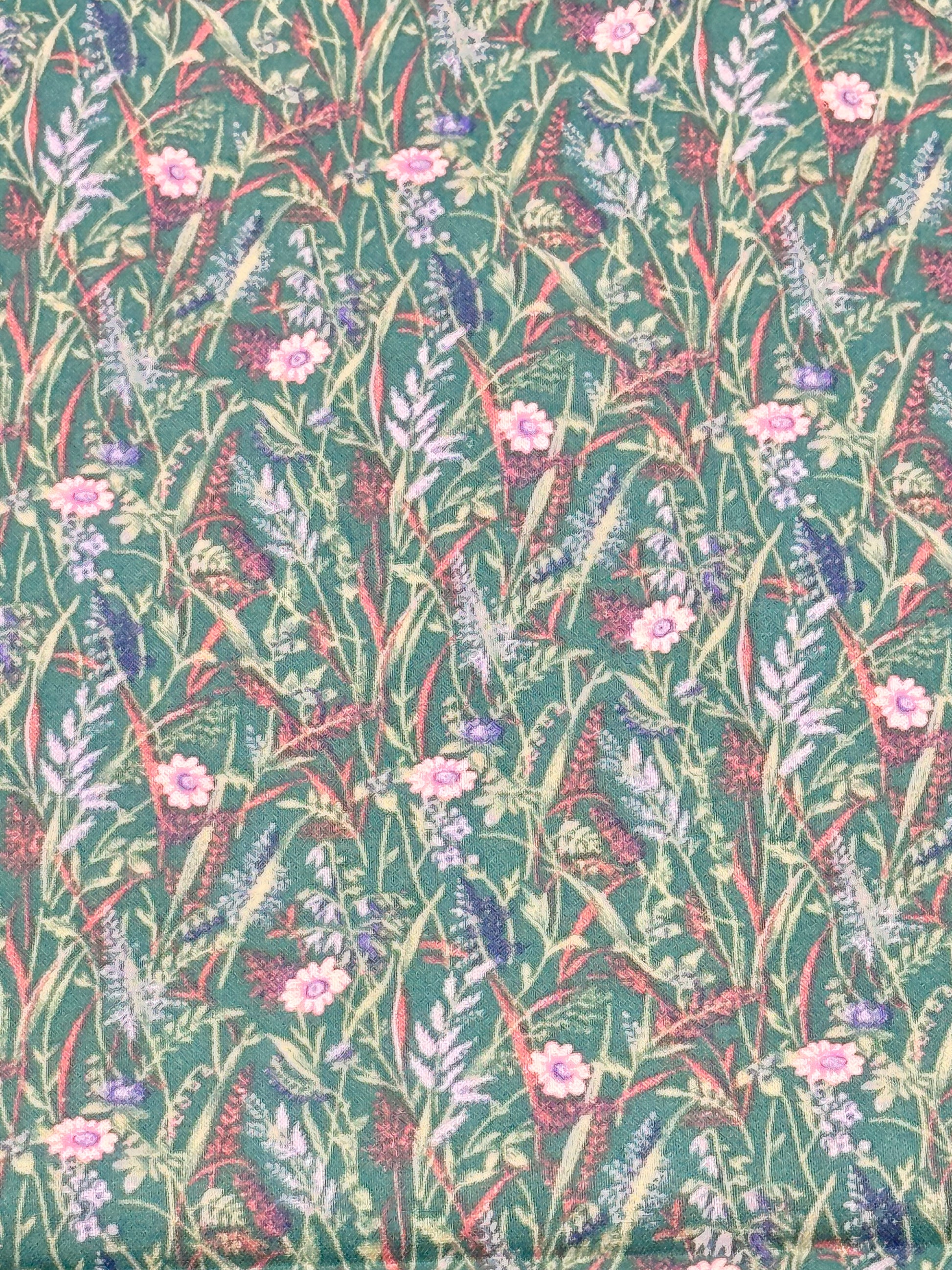 Flowers in a field VINTAGE GREEN QUILTING FABRIC