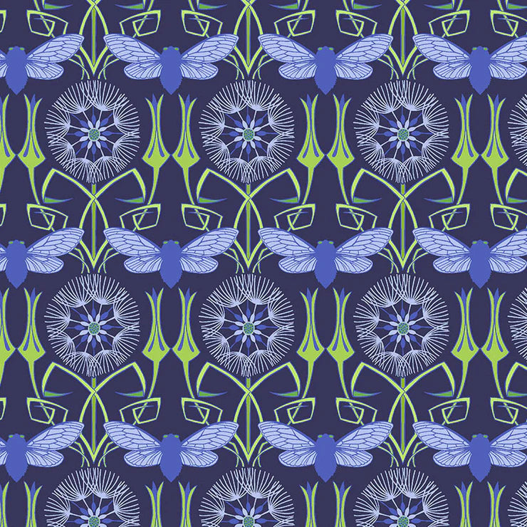 Goats Beard BLUE Flower Dance by Jane Sassaman Fabric Sold by the Half Yard
