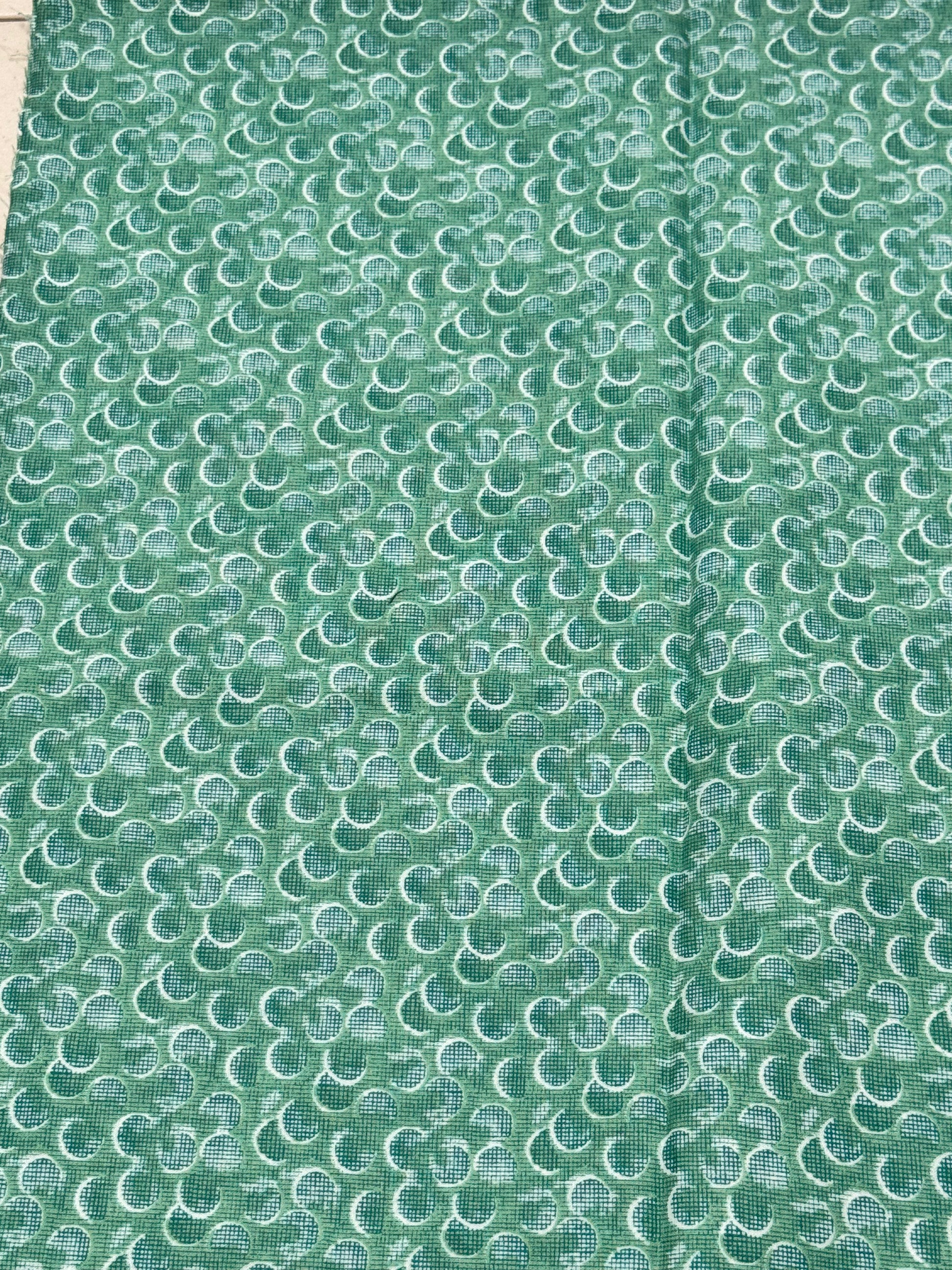 Green and white half circle on green bluish fabric BY THE HALF YARD