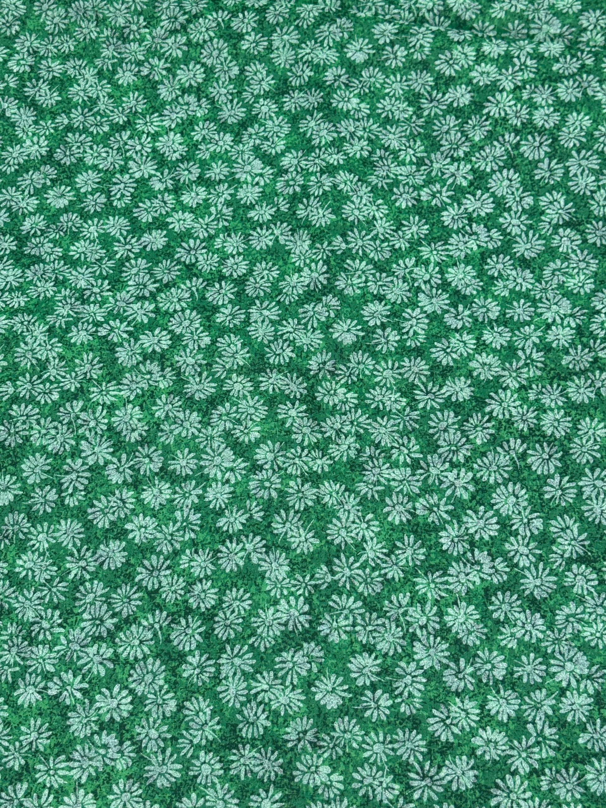 Greenish fabric with white small flowers VINTAGE QUILTING FABRIC