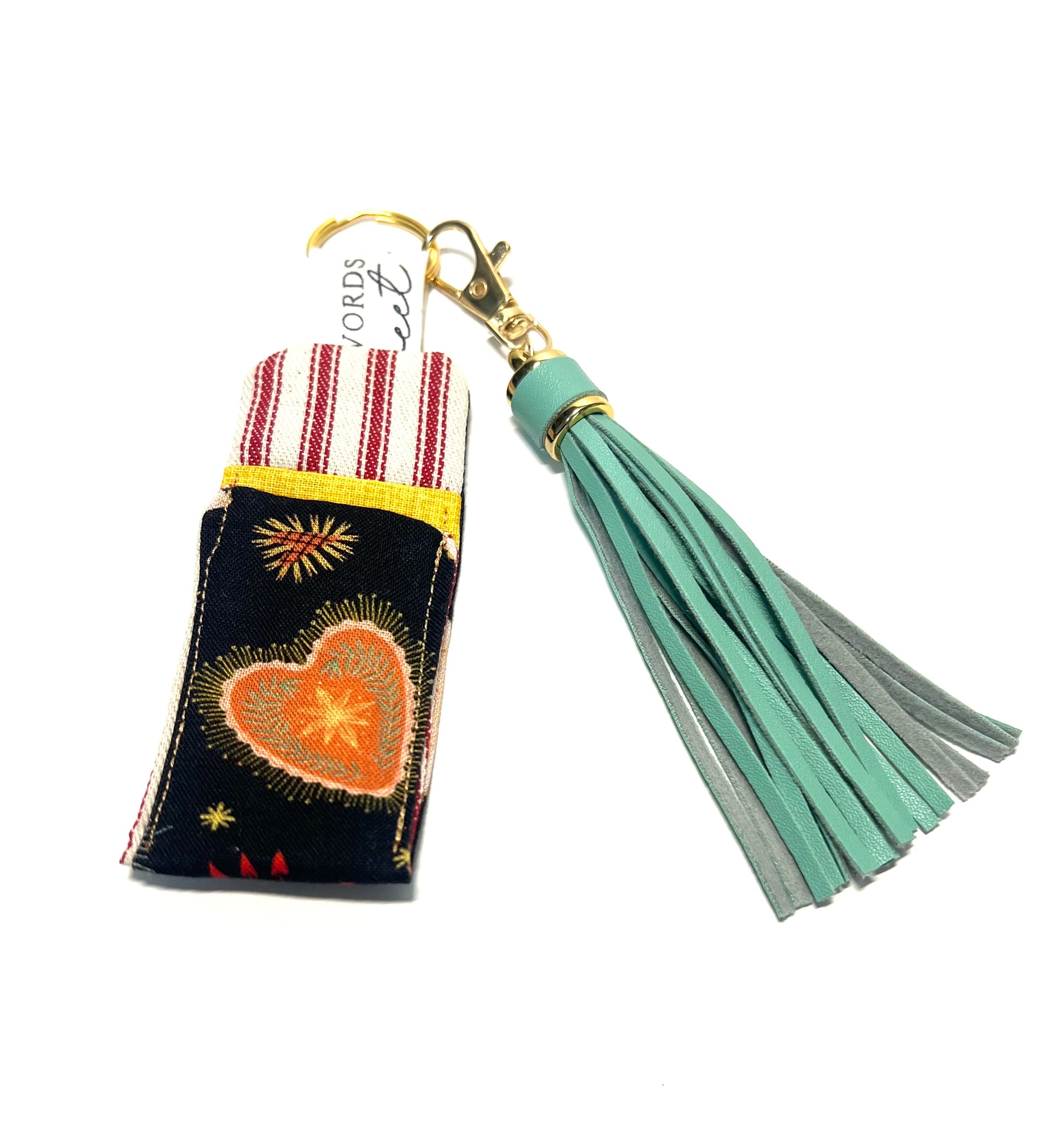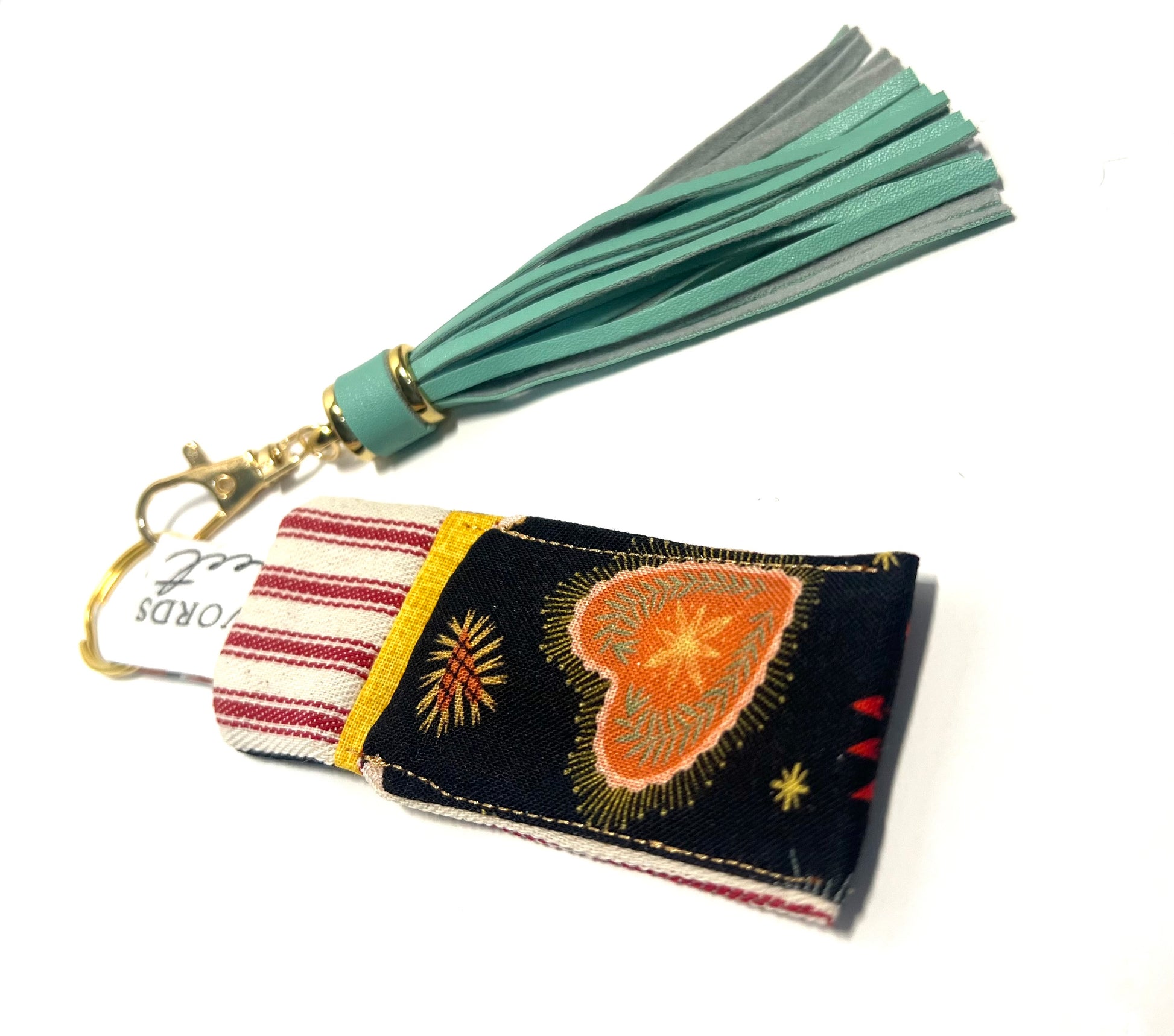 Hearts Fringe Chapstick Oil Holder Keychain handmade