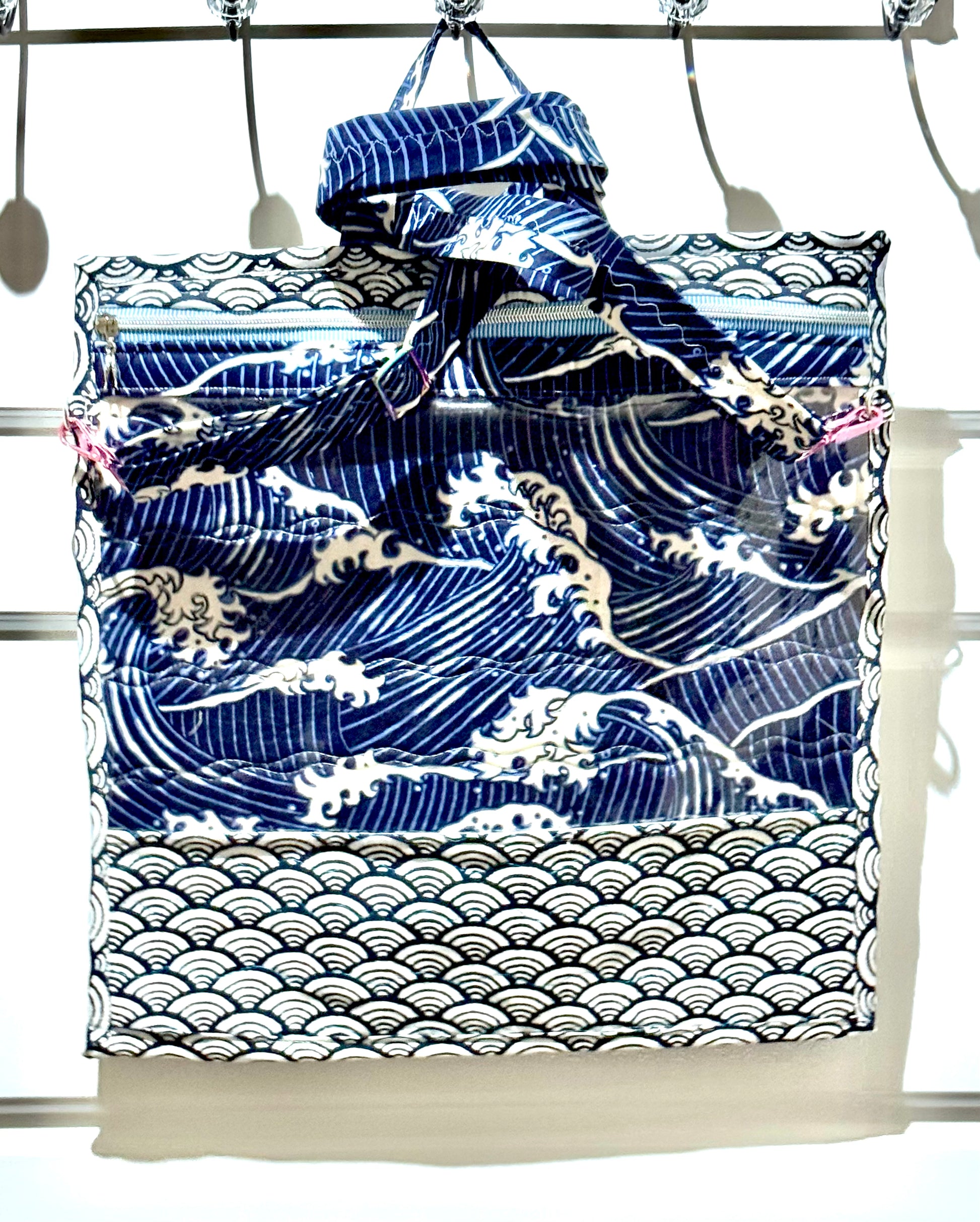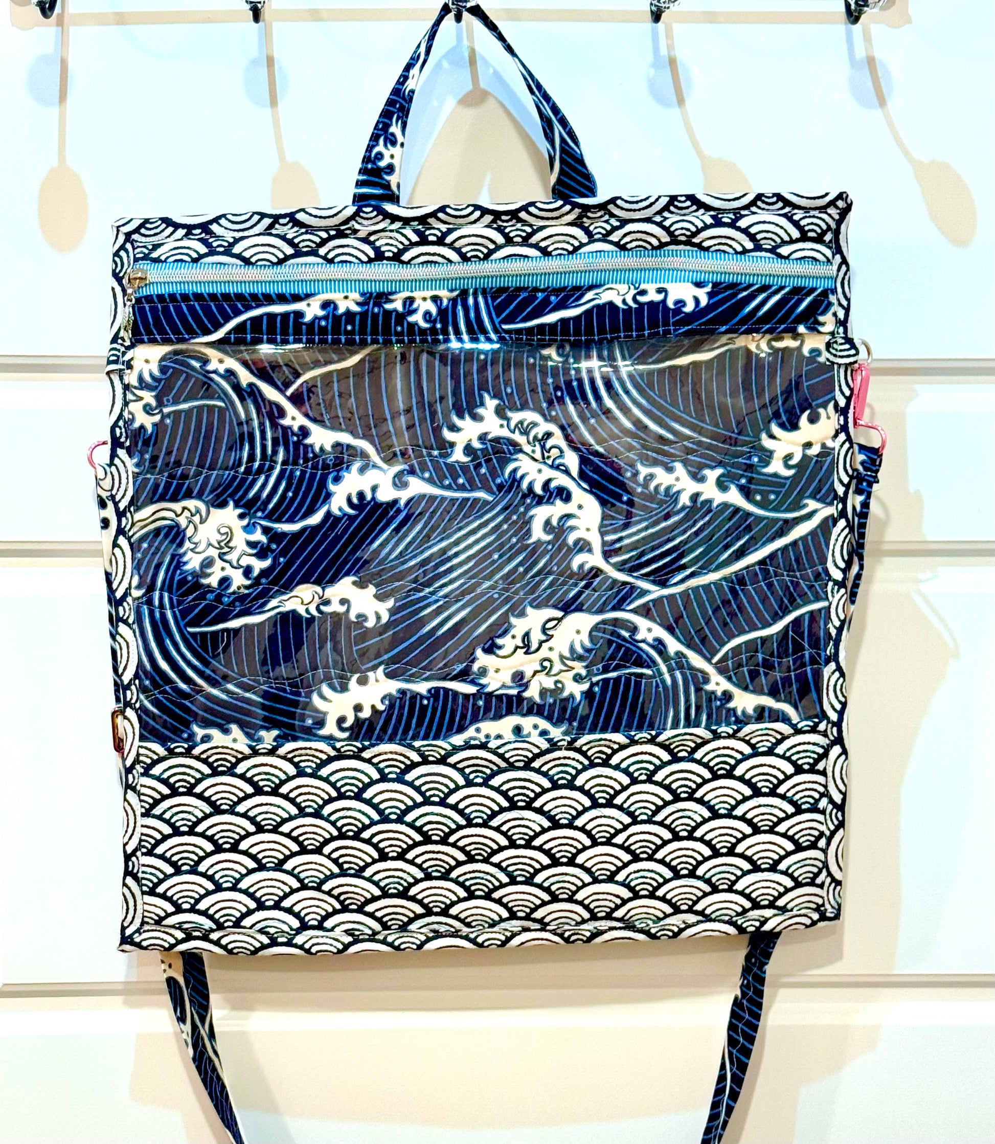 Introducing our Jumbo Vinyl and Plush Cotton Project Bag in an extremely out of print and highly desirable Alexander Henry Print "the great wave". Perfect for all your crafting needs, with a vinyl see-through pocket for easy access and storage. Its light weight and plushy feel make it a versatile piece that doubles as a clutch or small purse. Pair it with one of our matching straps and you have yourself a lightweight crossbody bag that is sure to be complimented everywhere you go.