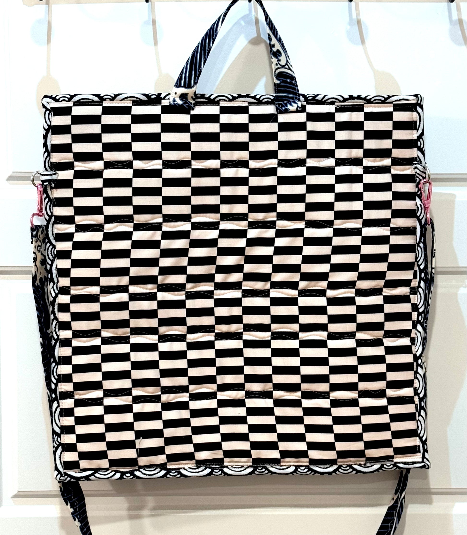 It features two d rings on the side to clip on to your strap for easy on the go wear or use the handle as a handbag too! It’s lightweight, easy to store, and you can see your projects readily.