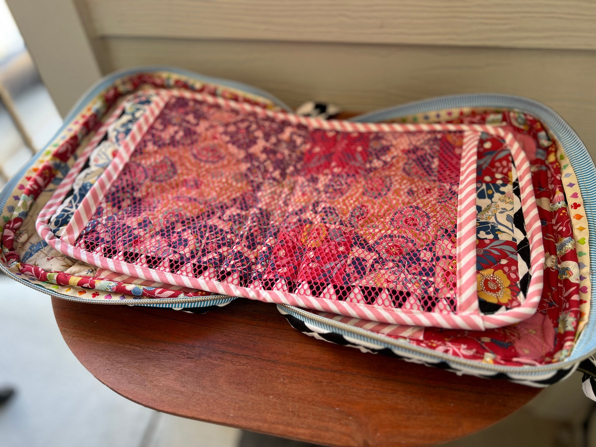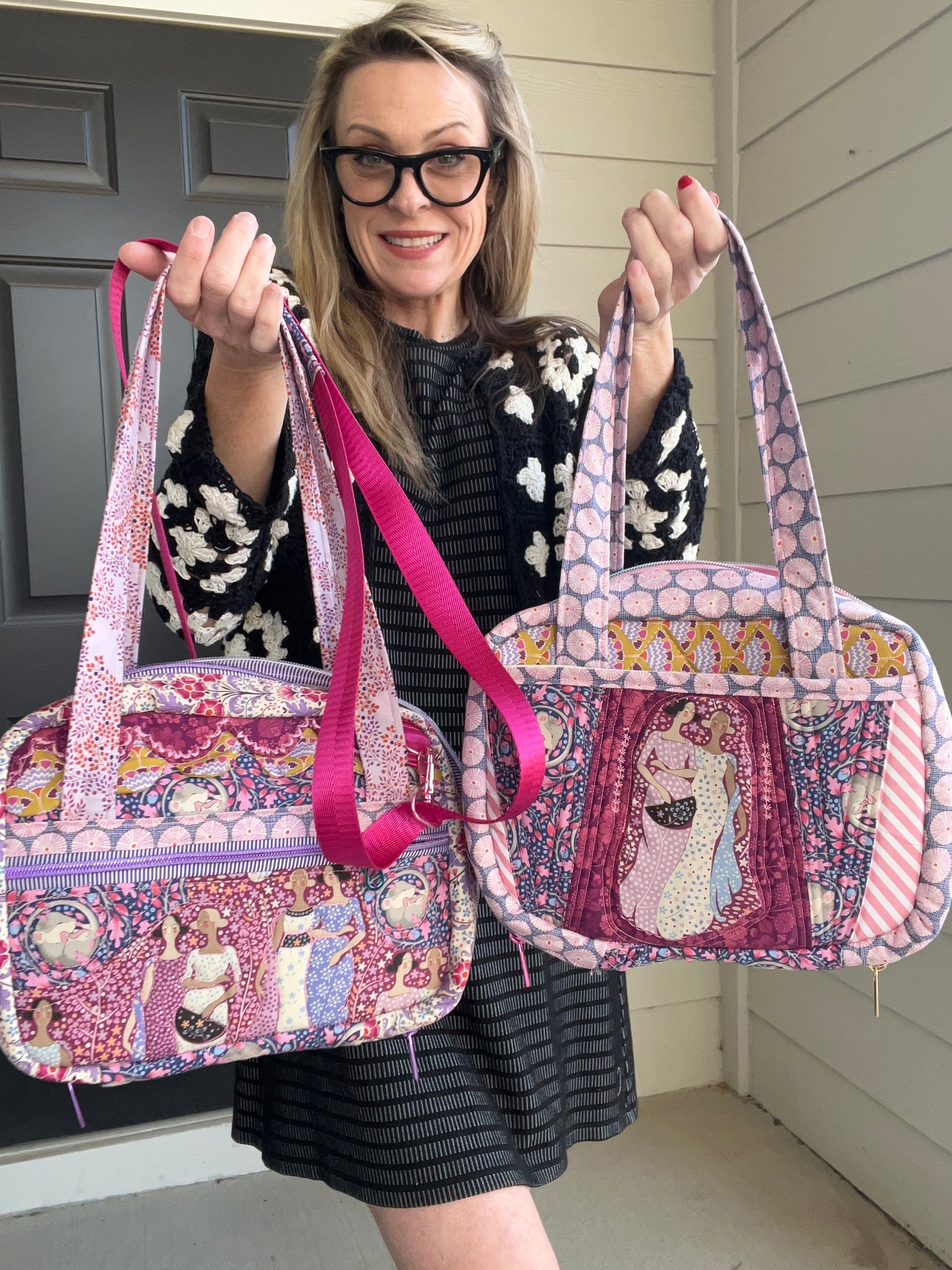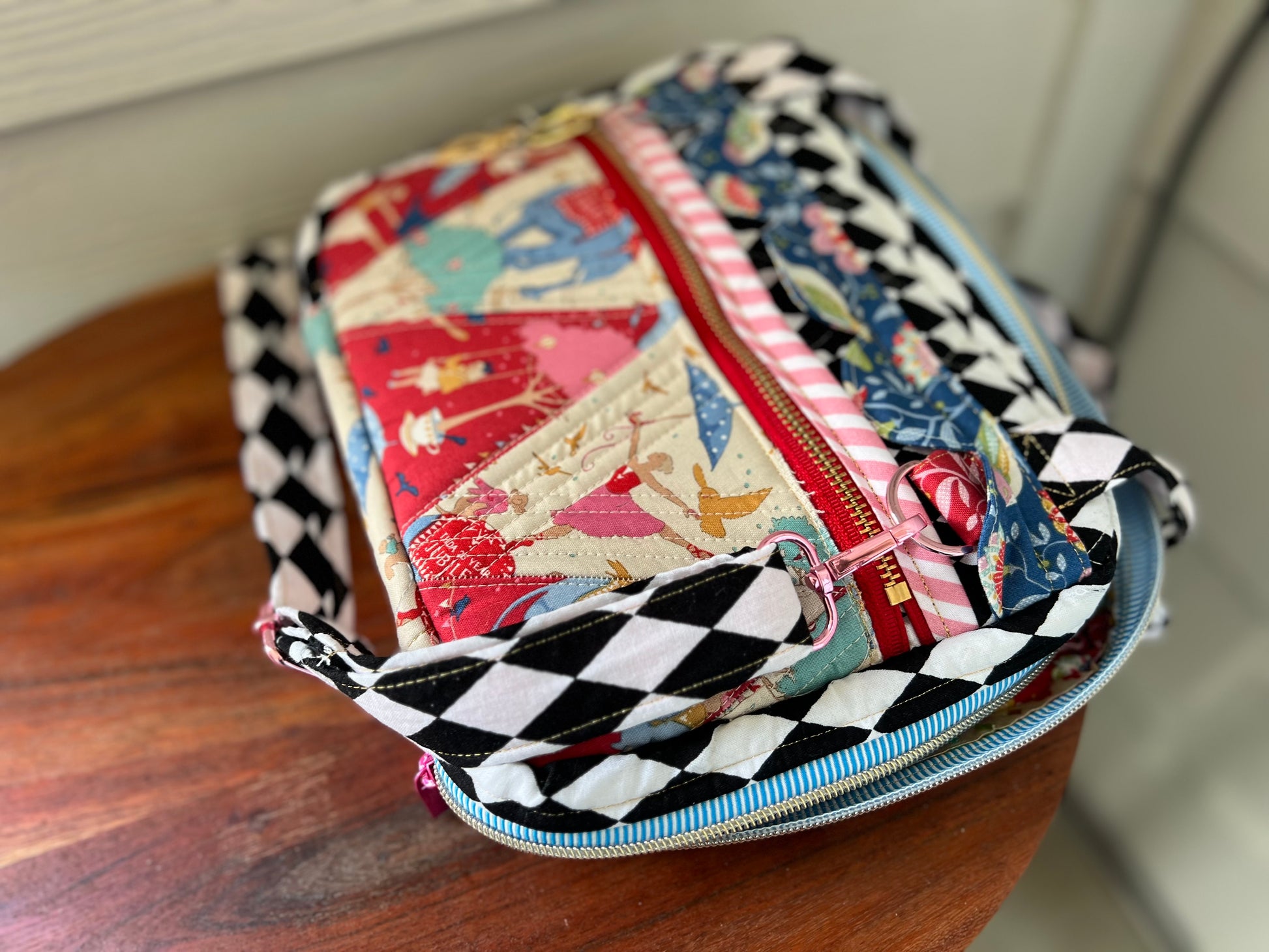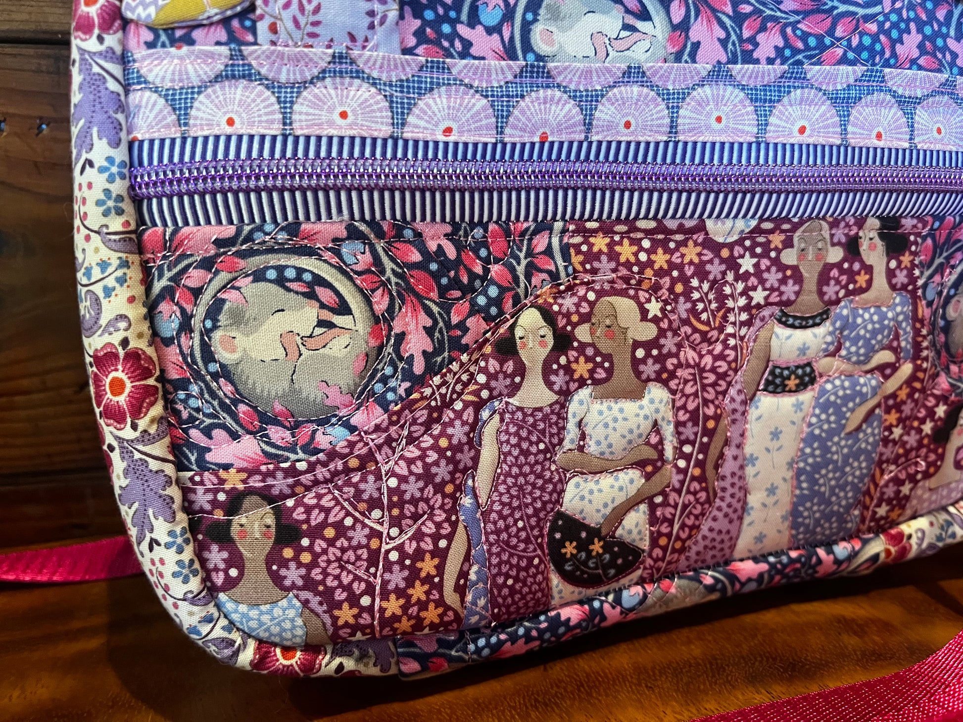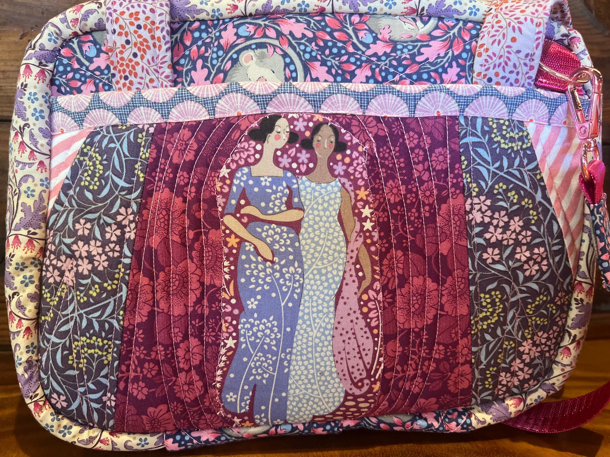 Tilda fabrics are a fine choice to accentuate this bag. Every bag comes with a one on one design zoom session to capture your hearts desire for your own treasured bag.