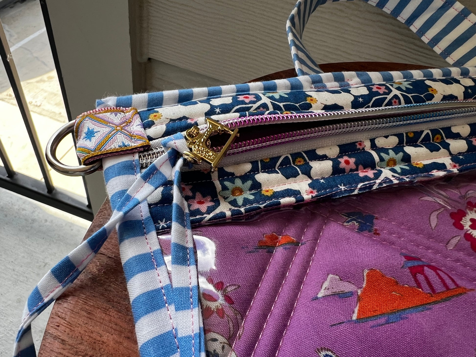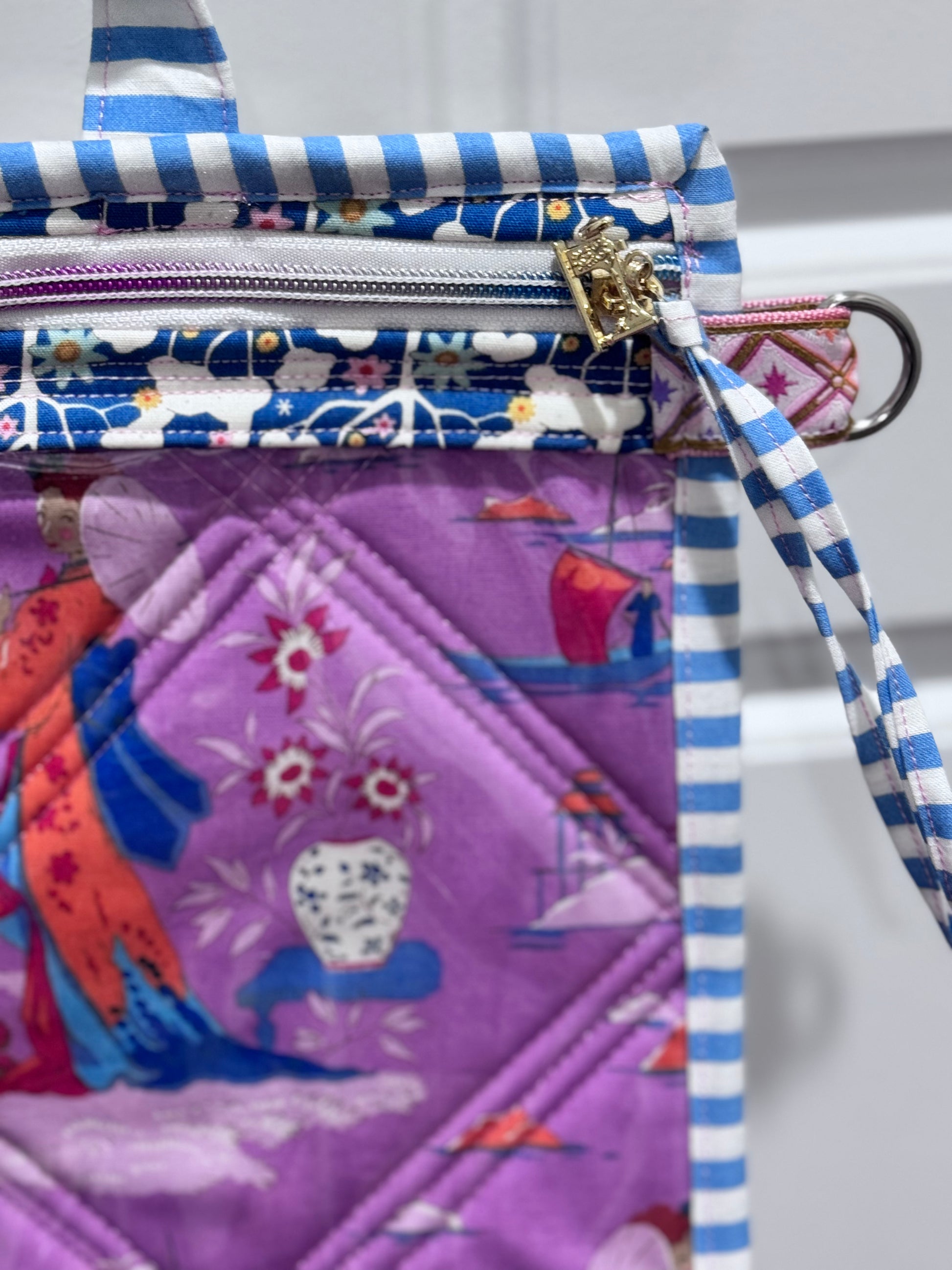 It features a beautiful strap in the violet Tilda Print that can detach and go onto any other bag you have.