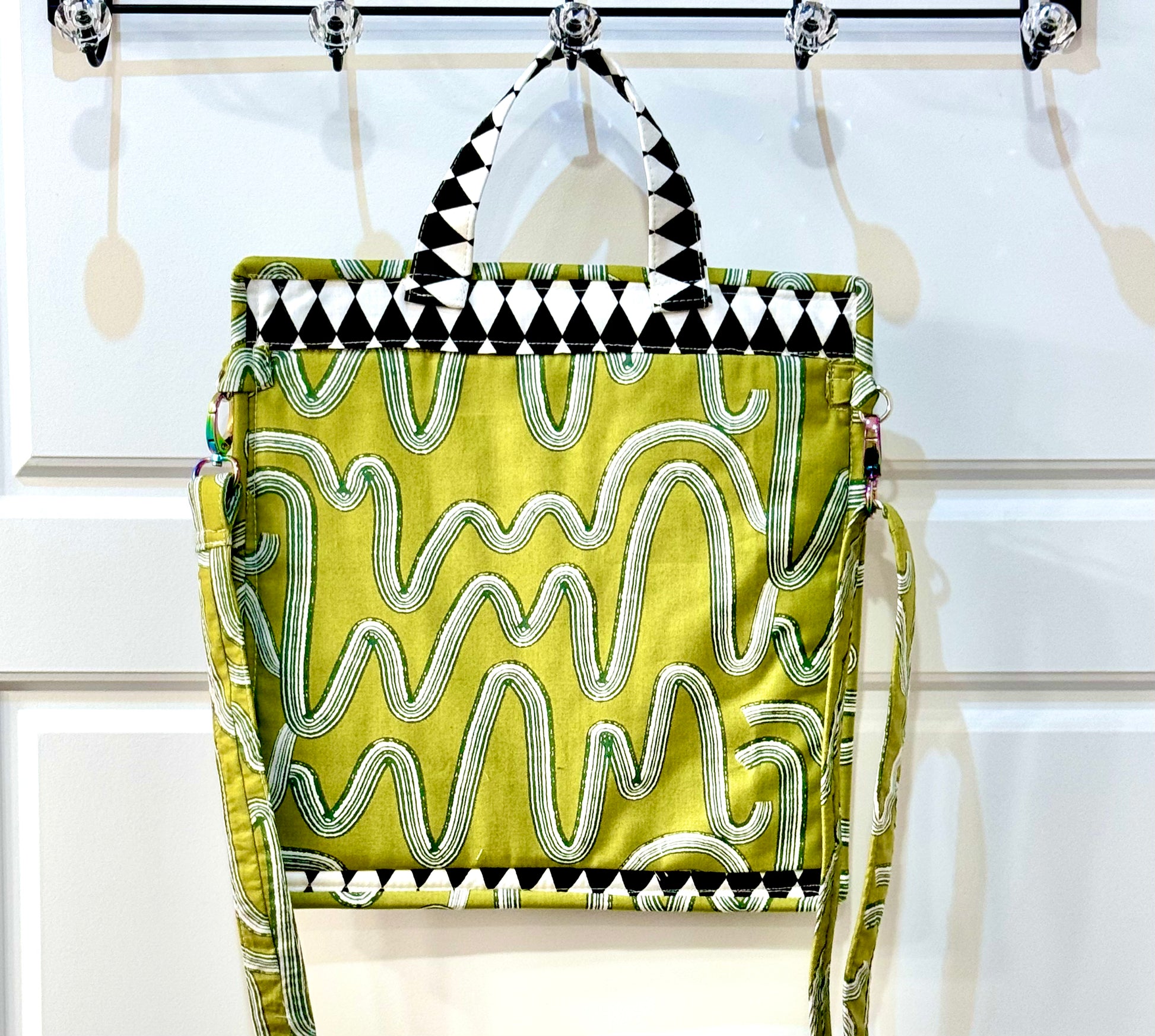 Introducing our Medium Project Bag in a beautiful and extremely out of print rare and highly sought after Ghastlie Getaway Fabric in Pink by the late great Alexander Henry. This bag features a ghastly scene with three of the main characters plus the infamous Sebastian cat. The back of the bag is made in the ghastlie string in green. Perfect for all your crafting needs, with a vinyl see-through pocket for easy access and storage. Its light weight and plushy feel make it a versatile piece that doubles as a clutch or small purse. Elevate your crafting experience today.