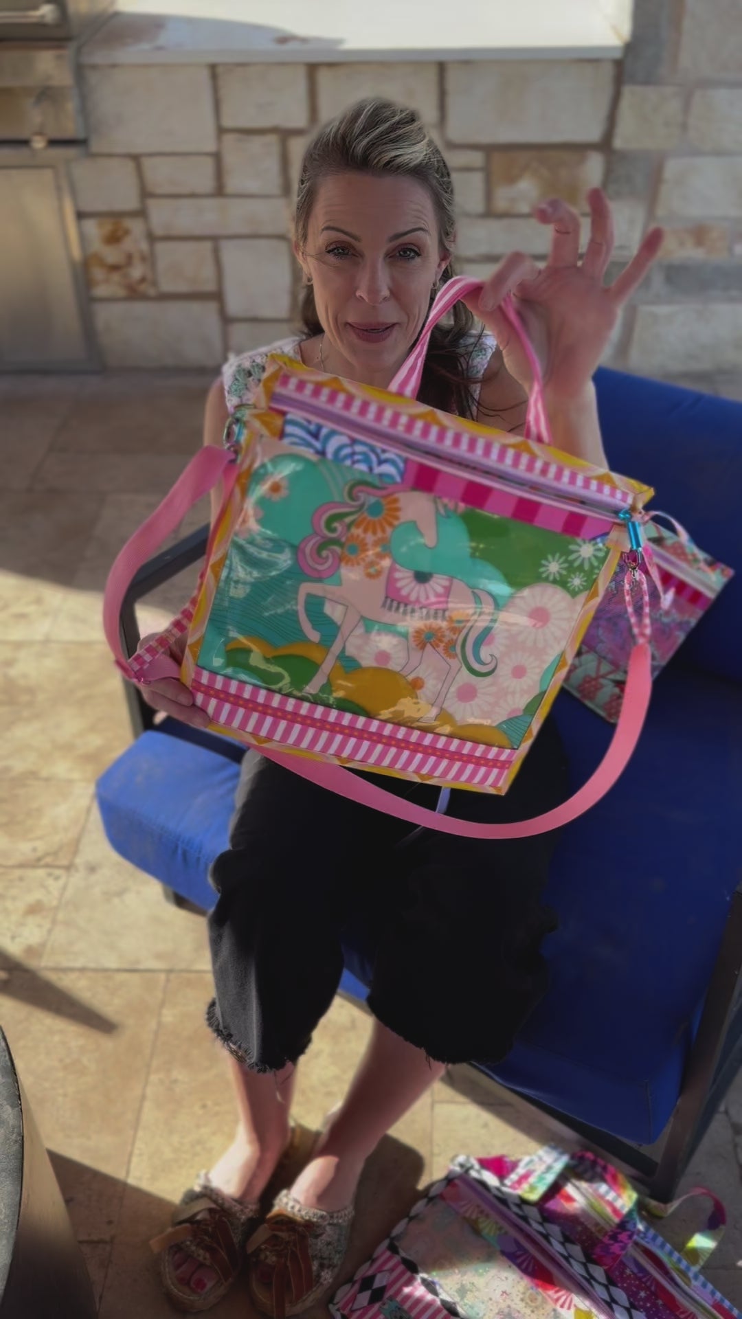 Introducing our Medium Project Bag in beautiful Ruby Star Society Fabric Collection from Melody Miller Prints in Carousel Daydream and Juicy Rattan Buttercup. Perfect for all your crafting needs, with a vinyl see-through pocket for easy access and storage. Its light weight and plushy feel make it a versatile piece that doubles as a clutch or small purse crossbody. Elevate your crafting experience today.