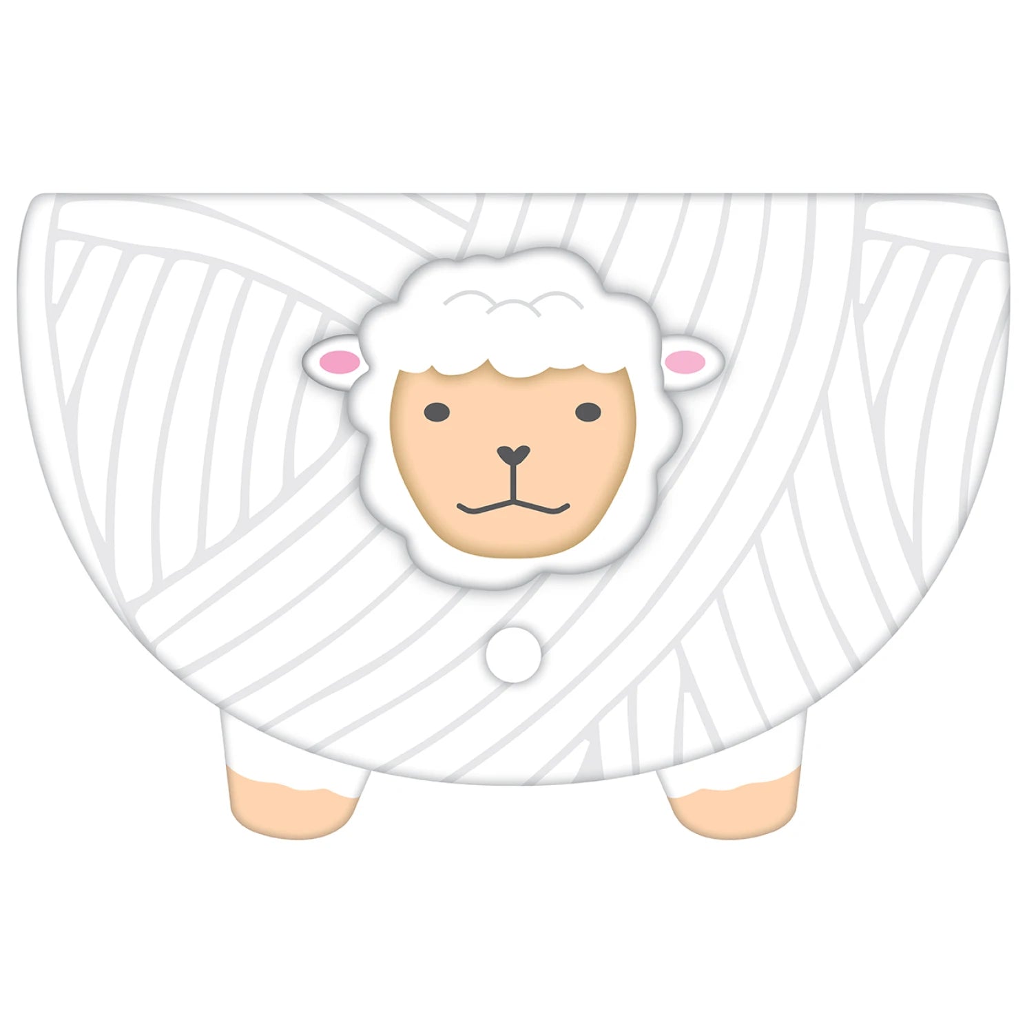 Adorable sheep-shaped yarn bowl with yarn ball designWhite color with swirling yarn patternsCute sheep face featuring pink ears, brown eyes, and snoutFour short legs for stabilityFunctional for holding yarn skeins during knitting or crocheting