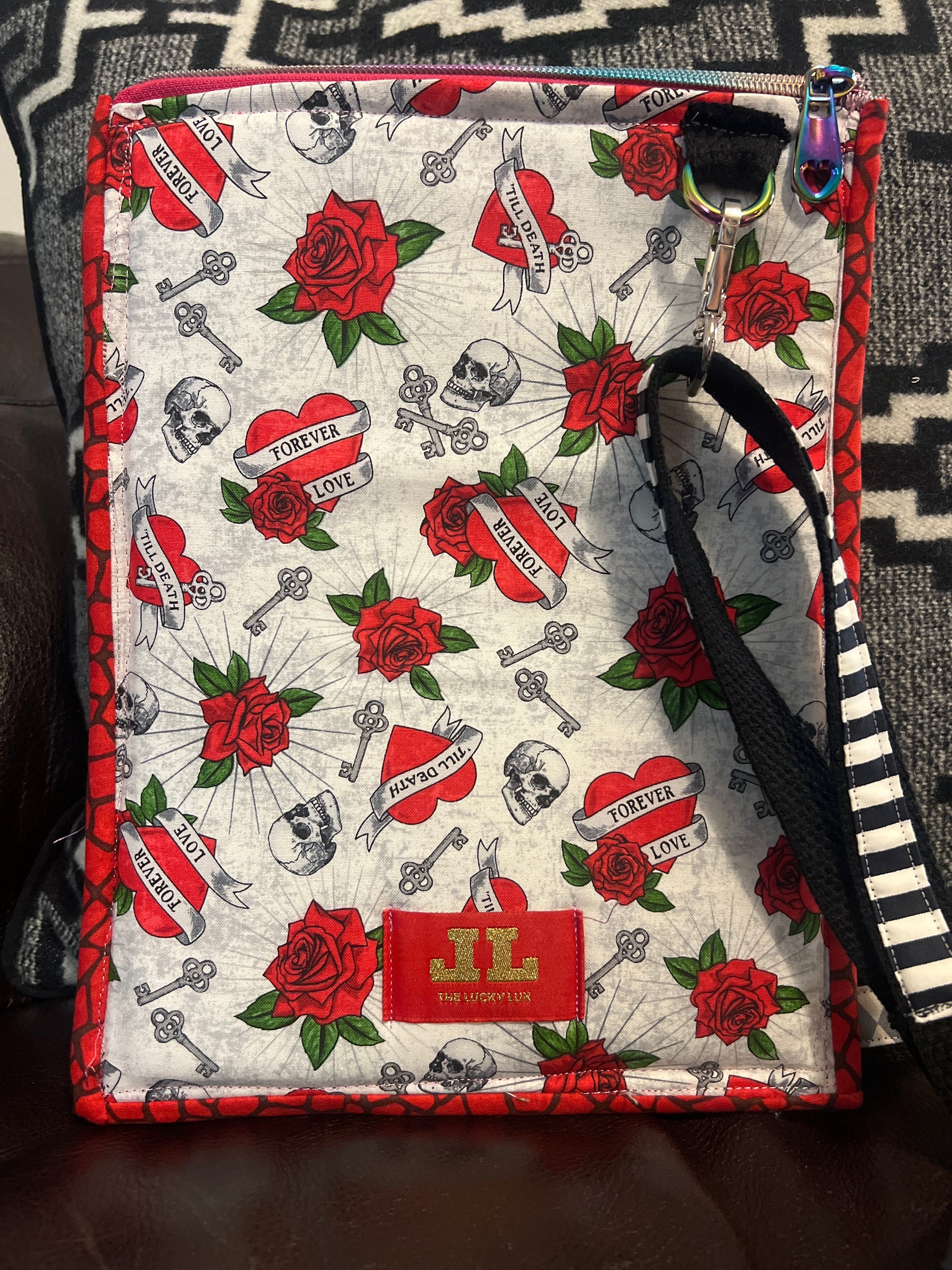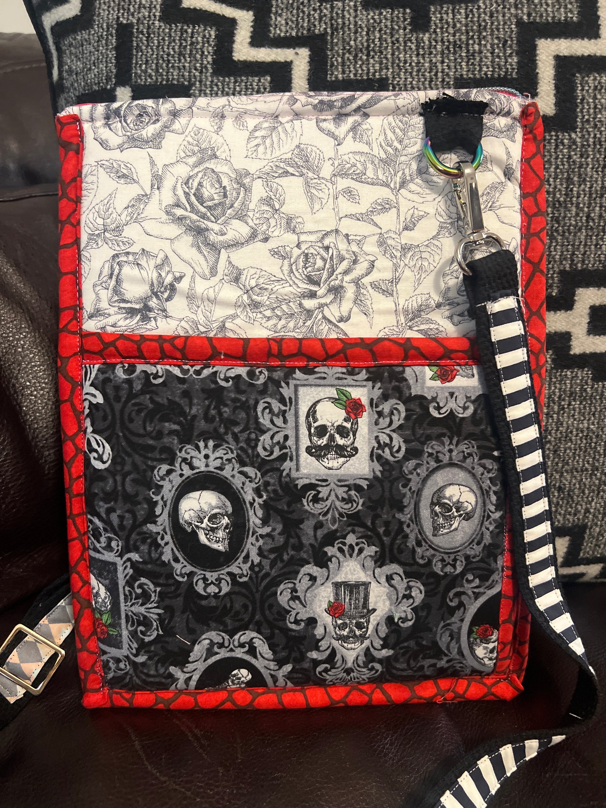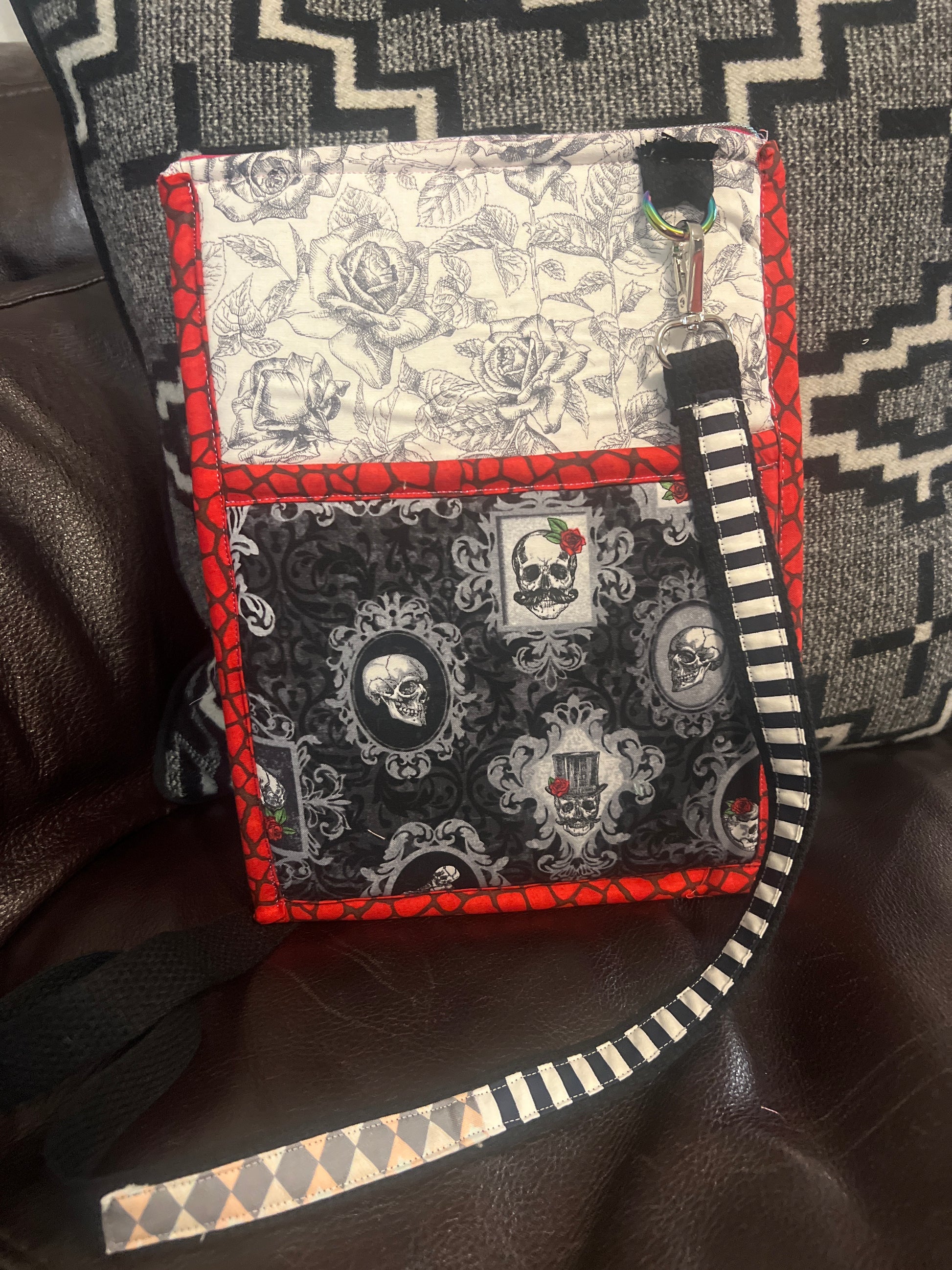 Spooky Bag Till Death Do Us Part Get ready to add a spooky touch to your style with the Spooky Bag Till Death Do Us Part collection by Northcott Fabrics. This crossbody purse features a zippered top pocket and plushie interior foam for added comfort. Perfect for any Halloween enthusiast, stay stylish and organized with this one-of-a-kind bag.