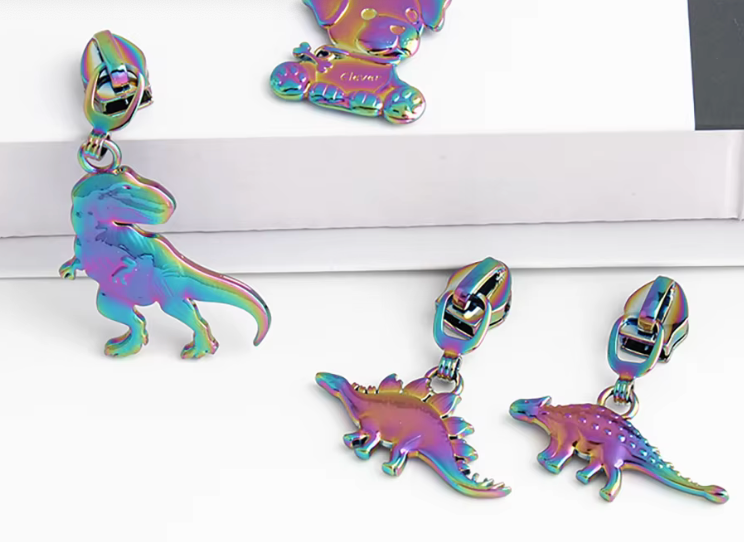 T-Rex Zipper Pull Rainbow or Gold Metal