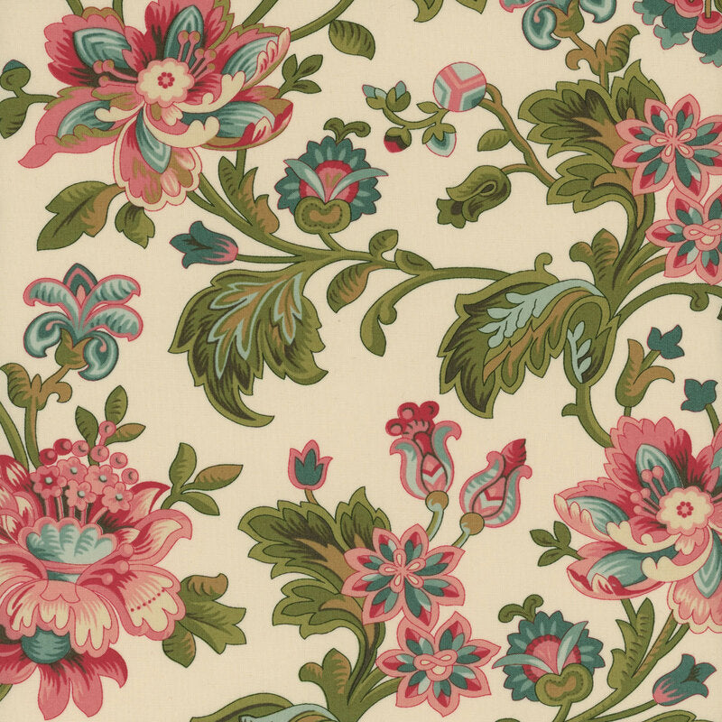 Introducing Collection for a Cause - Unity by Howard Marcus Dunn for Moda Fabrics, a quilting fabric collection that beautifully marries art and altruism. Proceeds from this elegant collection of vintage prints and decadent florals will be donated to Feeding America, the nation's largest domestic hunger relief organization. Add this cream fabric with vintage florals and leaves to your next quilting project.