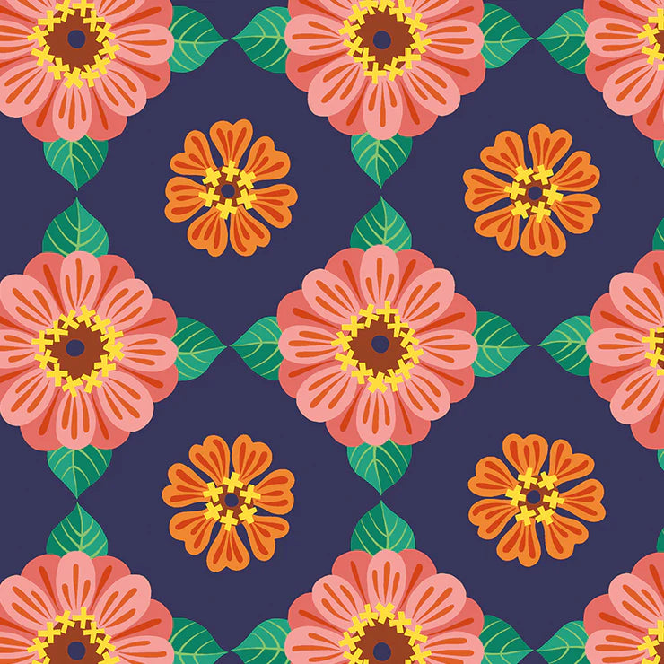 Zinnia MULTI Flower Dance by Jane Sassaman Fabric Sold by the Half Yard